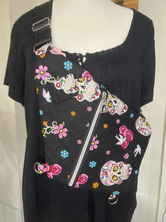 Handmade Glitter Skull Convertible Traveler Sling Bag