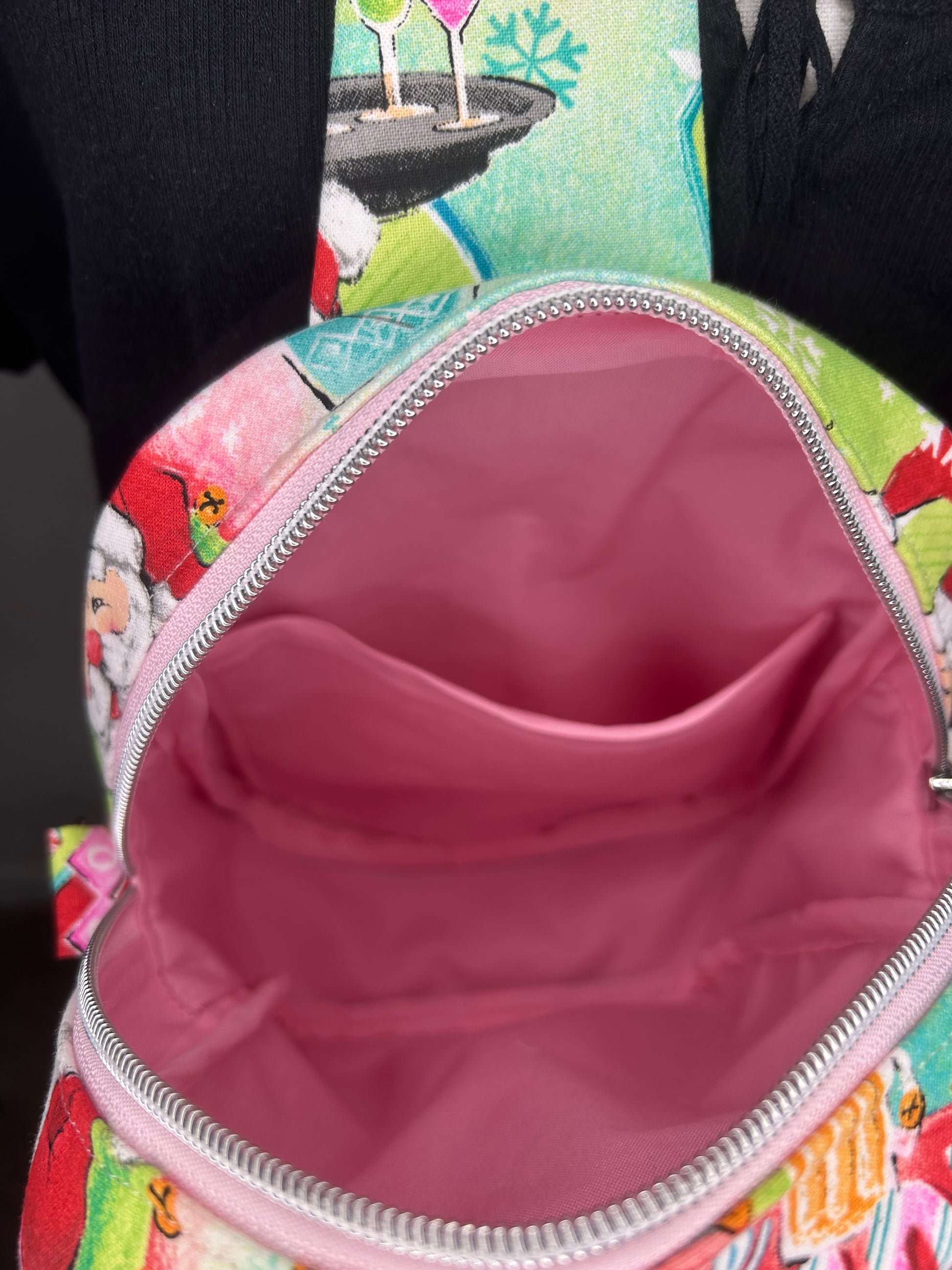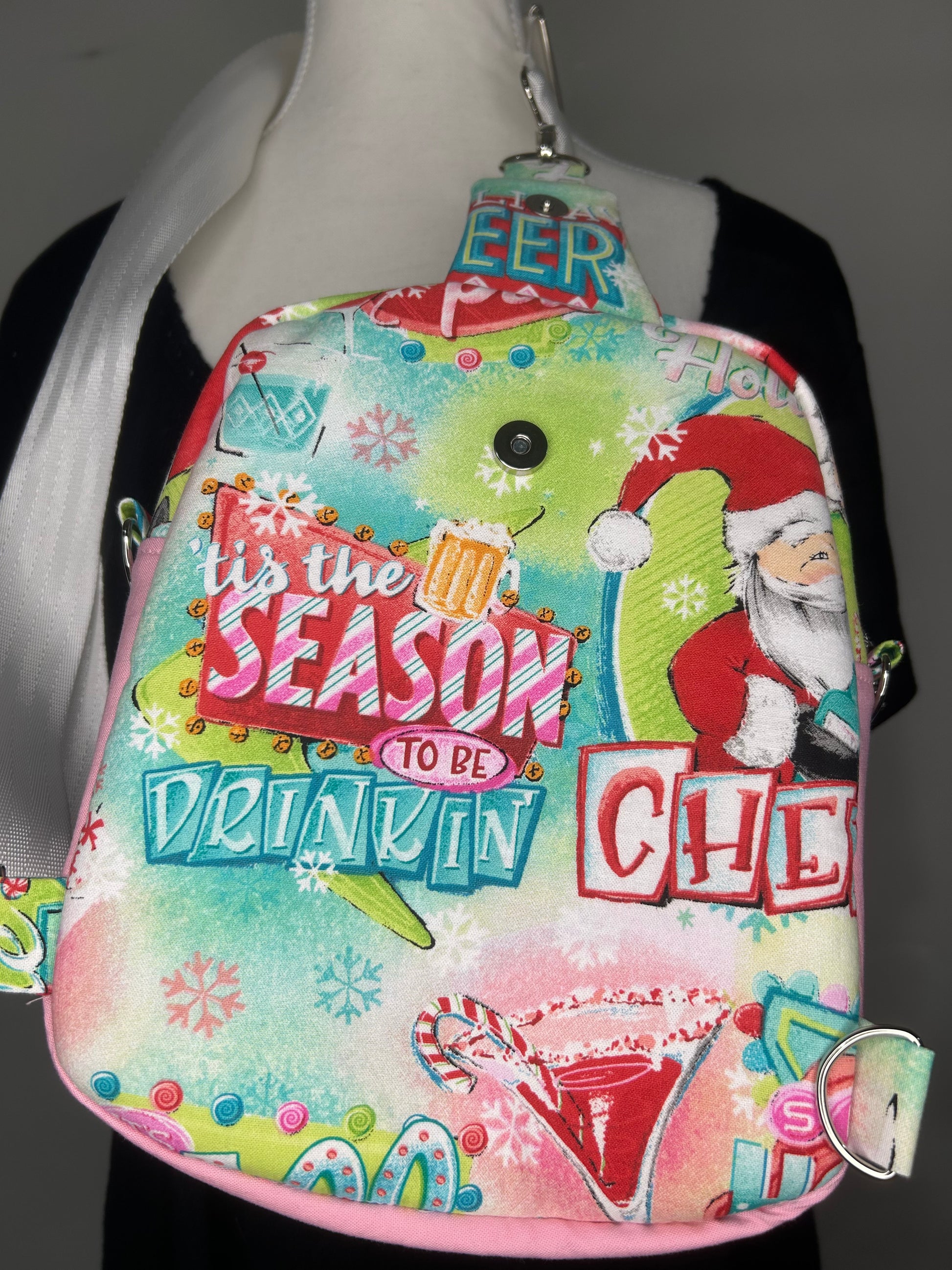 Introducing the Drunk Santa Convertible Pebble Sling! Made with funny drunk Santa cotton fabric and featuring an inside slip pocket, this bag can be worn left or right handed as a sling, crossbody, or shoulder bag. Designed by Kandou Patterns, it's perfect for the playful and quirky soul. Ho-ho-hold your essentials in style!