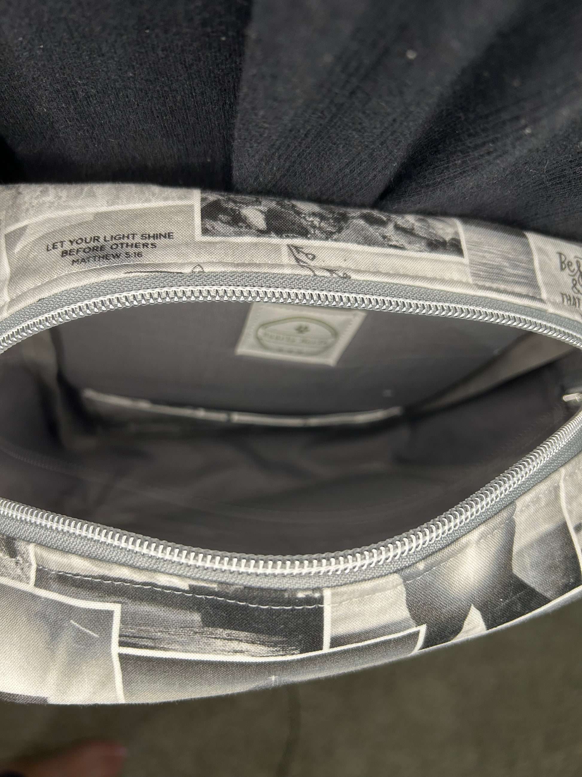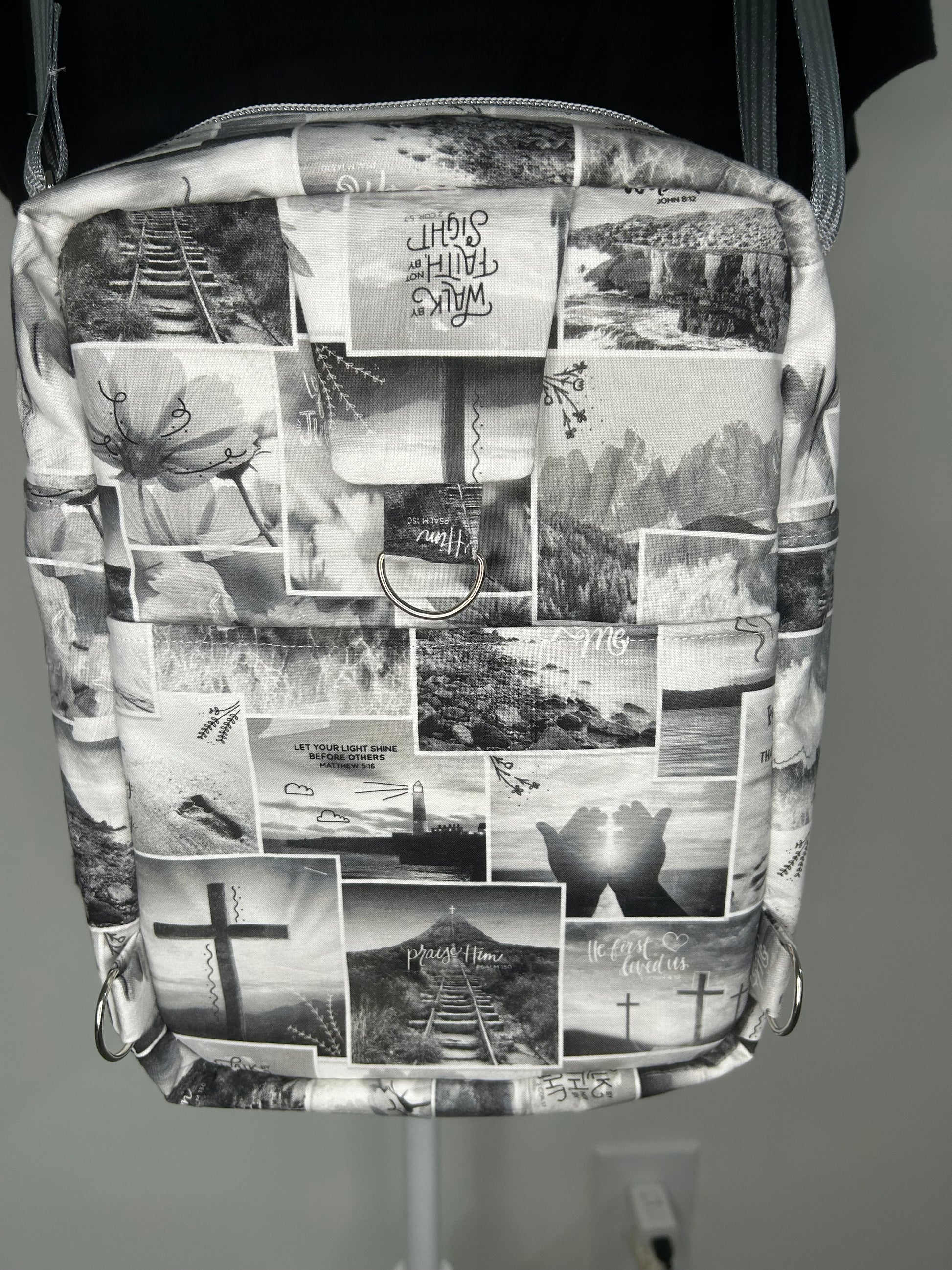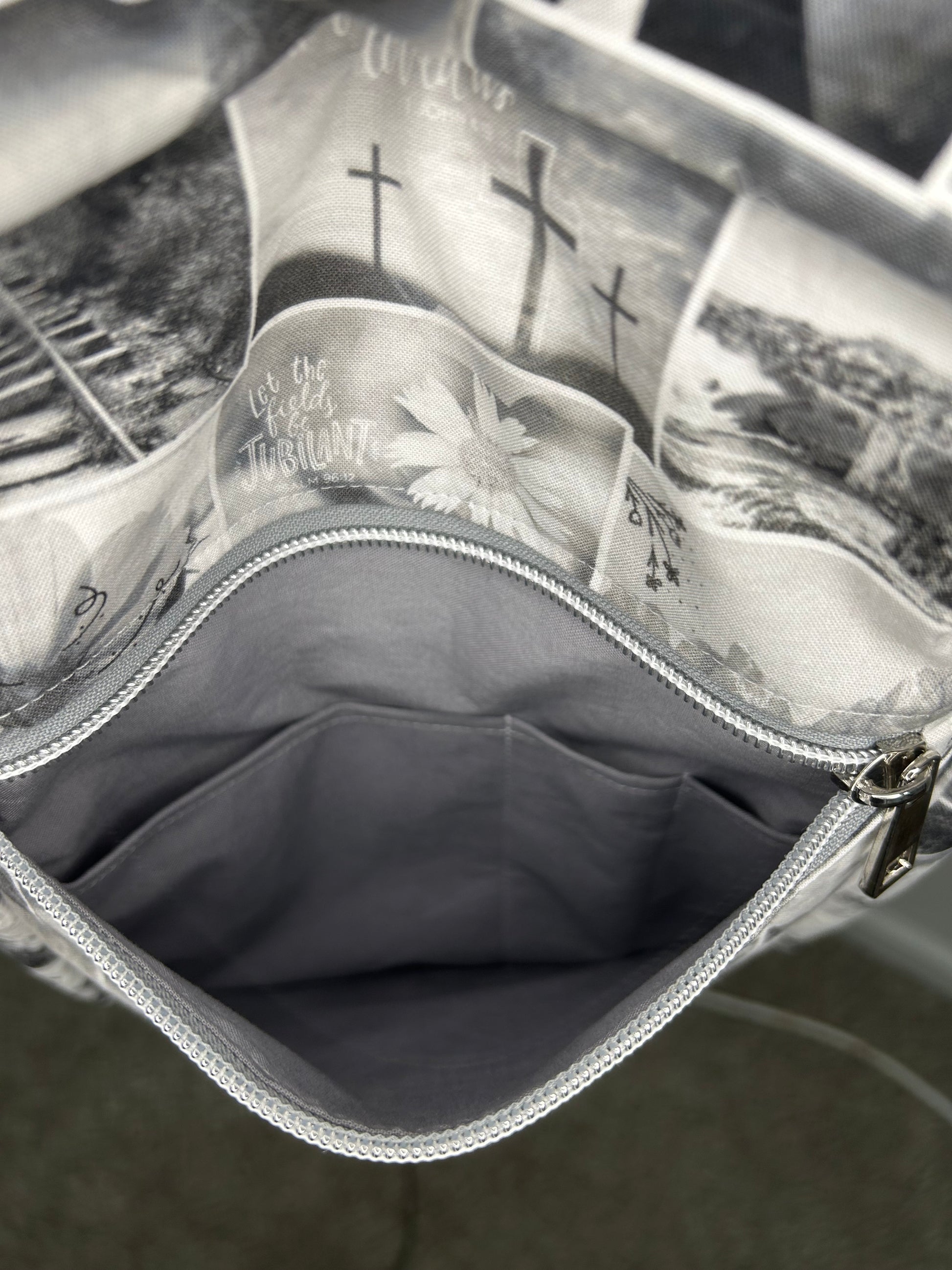 This Handmade Large Deluxe Bible Bag is your perfect playful companion for daily adventures. Made from soft cotton, it measures approximately 7.75”w x 12”h x 3.25”d, roomy enough to safely hold your iPad Pro thanks to foam interfacing. Multiple pockets keep your essentials organized: an exterior zipper pocket with space for pens and phone, a rear slip pocket with a magnetic closure, and an interior slip pocket. Wear it your way—as a crossbody, sling, or shoulder bag—with hidden magnets that tuck the strap neatly when not in use. (iPad, phone, and pens not included!) Adapted from a pattern by Plains and Prairie.