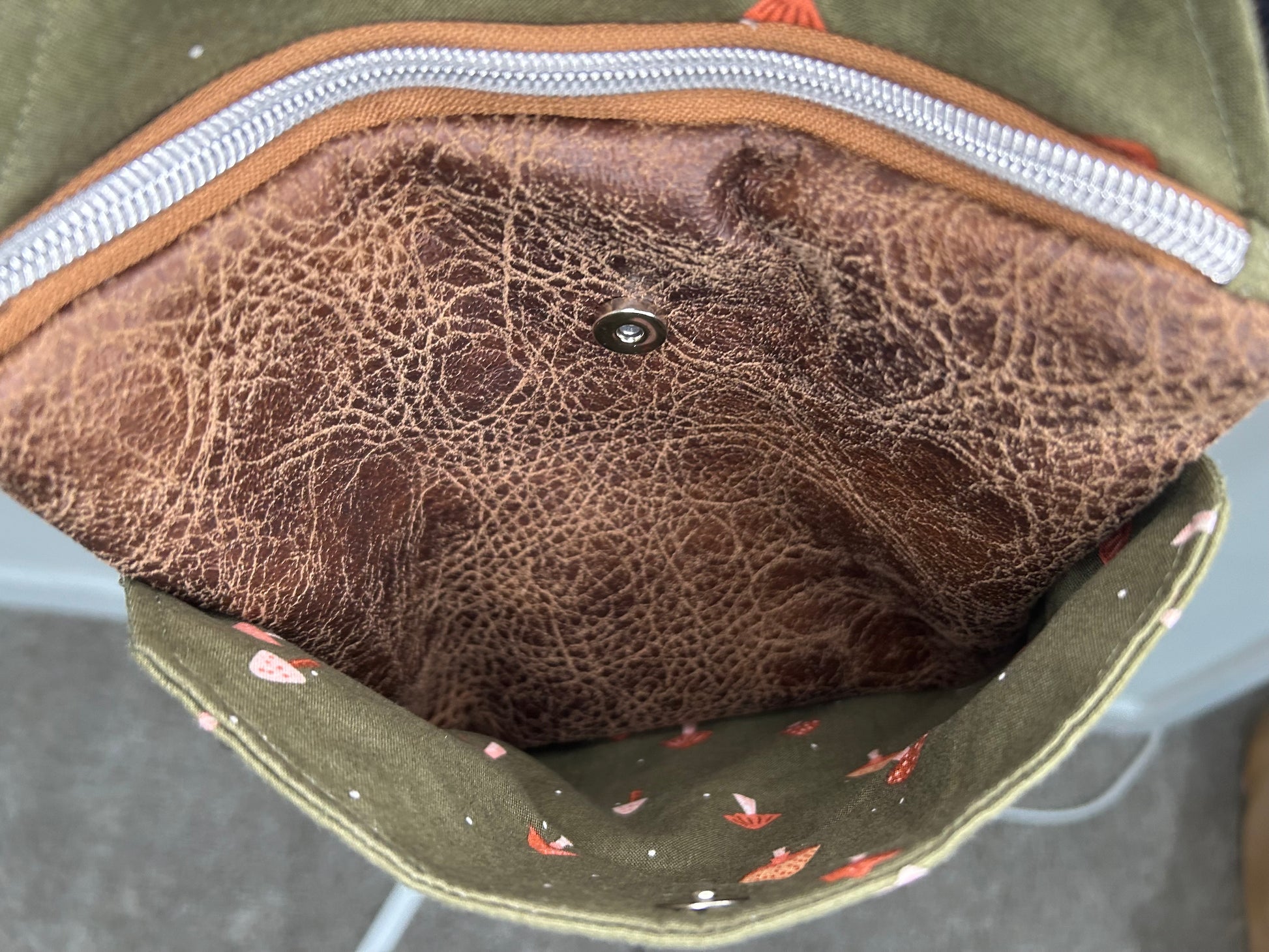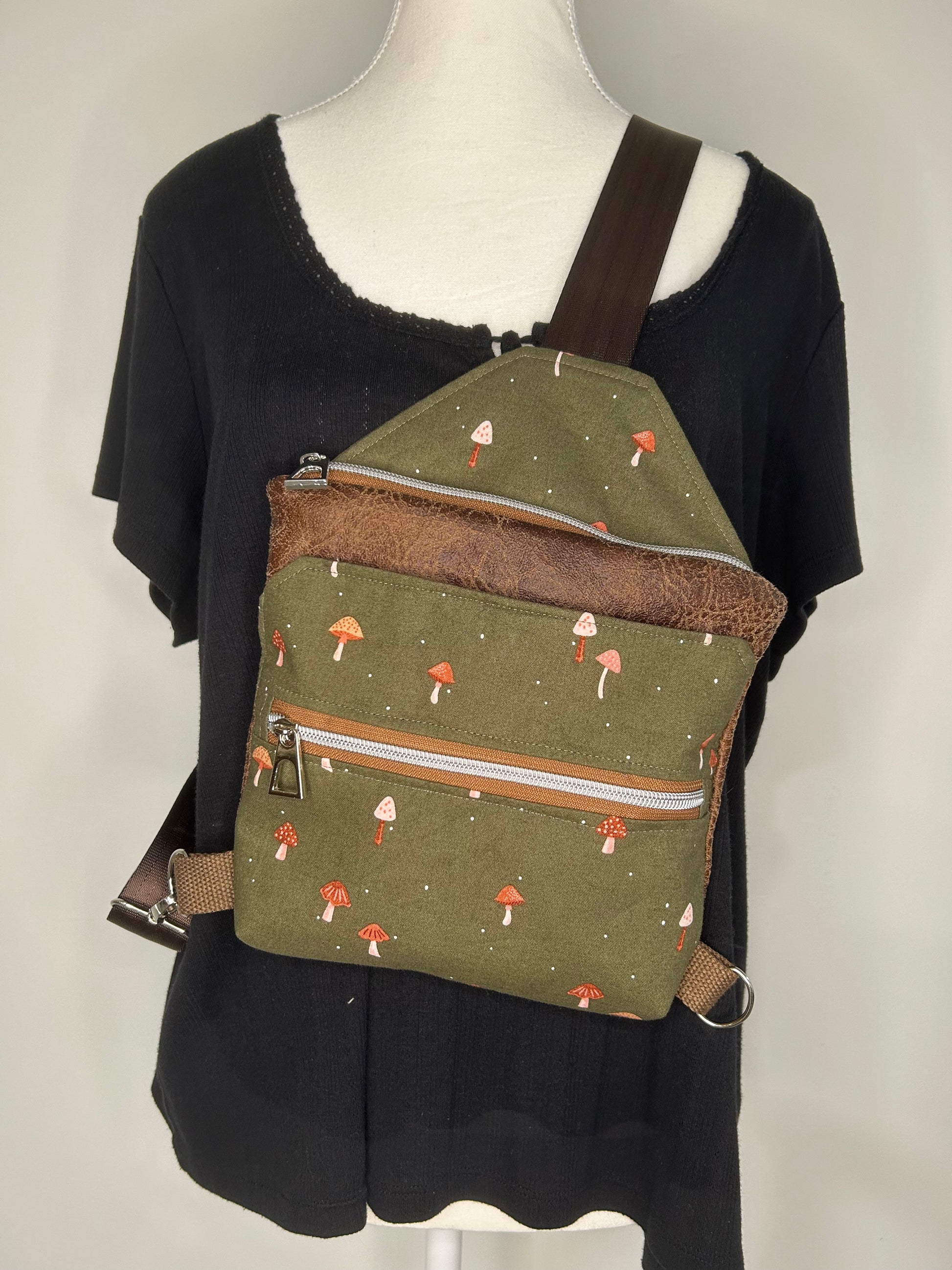 Bring a touch of whimsy to your day with the Handmade Mushroom Buggy Sling Bag! Made from soft cotton and weathered upholstery fabric, this playful bag keeps your belongings organized with one zippered pocket, a roomy slip pocket with magnetic closure, and a main compartment sealed securely with a zipper. Compact yet clever at 8.5” wide by 11.5” high and 1.75” deep, it’s perfect for your adventures. Designed with a unique pattern by Fireweed Stitches, it’s a fun way to carry your essentials wherever you go!