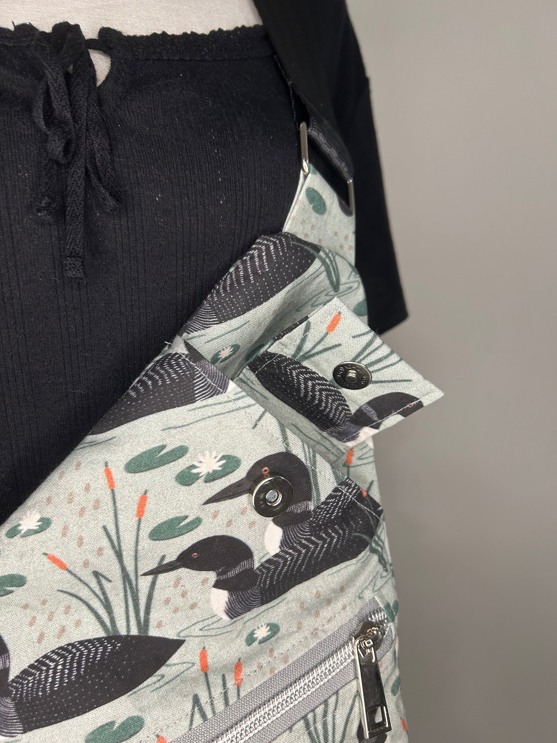 The Loon Love Traveler Convertible Sling Bag is crafted from soft cotton Loon fabric with a pattern by Kandou Patterns. Its clever pockets include a front zipper, a magnetic phone pocket, and a large hidden rear zipper pocket for all your essentials. Measuring about 8.5” wide by 12.5” high, it’s perfectly sized to carry your day’s must-haves (phone and wallet not included). Wear it your way—sling, crossbody, or shoulder—and get ready to explore with style and ease!